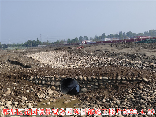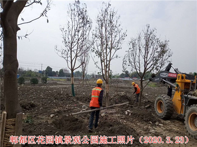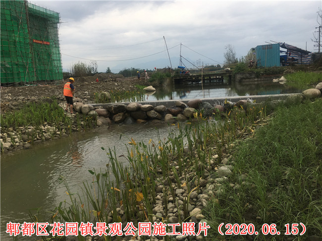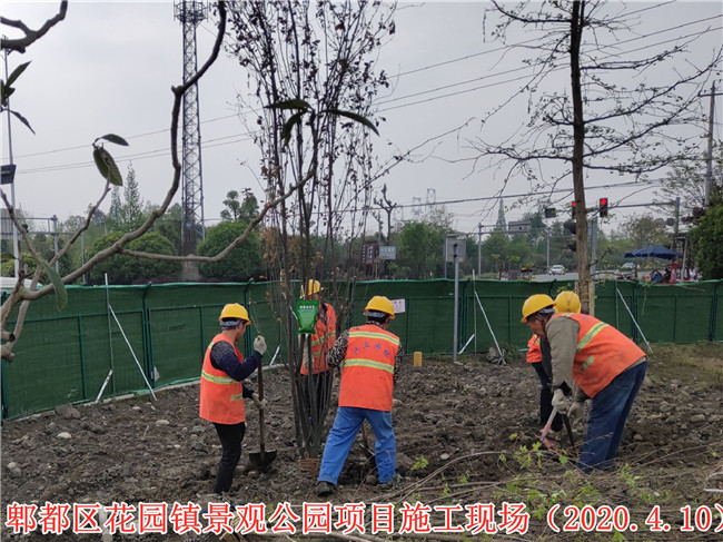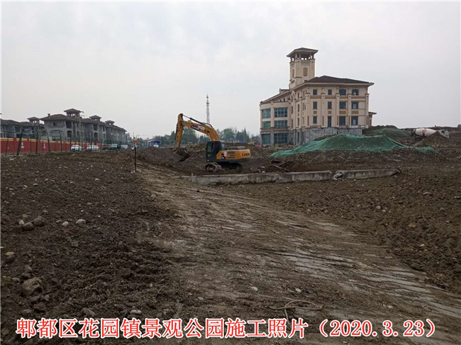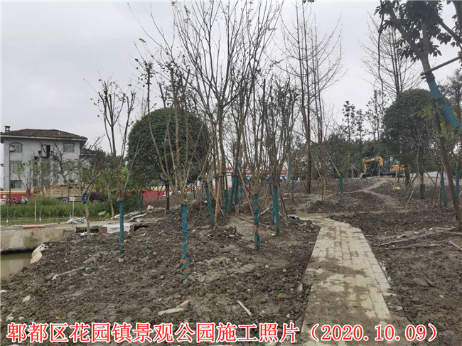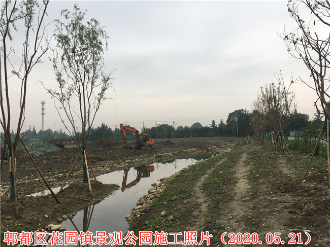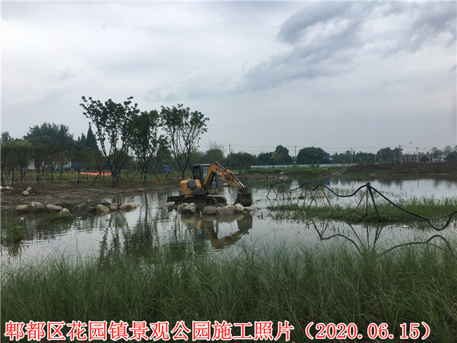 郫都區(qū)花園鎮(zhèn)場鎮(zhèn)改造景觀公園項目施工二標段項目施工現(xiàn)場
