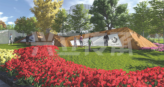 設計以大熊貓基地景觀提升改造為前提,為游客集散中心提供“以人為本”的服務休息點。同時設計結(jié)合大熊貓繁育基地本身的文化理念,融入熊貓文化、竹文化、生態(tài)自然等文化,景觀設計既滿足功能又有趣味性。