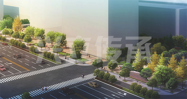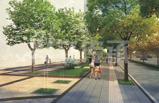 商業(yè)街將人從喧囂的城市交通中解放出來,樹立的是人在空間中的主導地位。府青路臨街綠化為人們提供可小憩的小空間,創(chuàng)造舒適、優(yōu)美、富于情趣的街道環(huán)境。